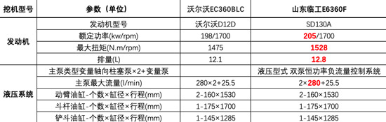 发动机对比对比沃尔沃EC360BLC(左)、山东澳门广东会网站E6360F挖掘机(右)