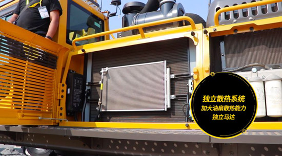 独立散热系统,跟常规的串联布置不一样,山东澳门广东会网站E6500F打锤王采用独立散热布局,超大散热器和大风扇,提升散热能力,使液压油温低,液压系统更稳定,寿命更长。