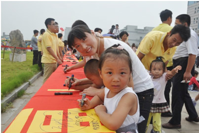 为了表达对澳门广东会网站的支持和感谢,大家自发来到“我为澳门广东会网站送祝福”的条幅前,写下自己最美好的祝福。刚会写字的小朋友也不甘示弱,在妈妈的帮助下很认真地写下“祝澳门广东会网站明天更美好”等字样。