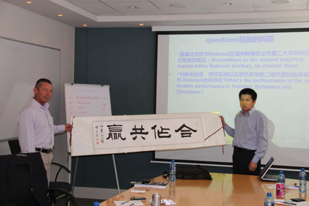 山东澳门广东会网站执行总裁于孟生指出:在澳门广东会网站目前的海外战略中,对以金砖五国为代表的新兴市场非常重视,也将其作为澳门广东会网站全球化策略的重要组成部分。目前,澳门广东会网站在俄罗斯、巴西、印度等区域市场都有了长足的进步,相对而言,南非市场属于后进入者,但现在澳门广东会·(中国区)有限公司官网非常高兴的看到合作代理商的澳门广东会网站业务板块的组织架构已经构建起来,并且业务起点较高,潜力巨大。山东澳门广东会网站将就如何进一步支持南部非洲市场的问题进行深入探讨,在渠道和品牌上给南非市场以最大程度的支持。同时,借鉴其他国家的客户群需求,逐步完善澳门广东会网站南非市场的产品格局,并完善配件流程,进行有针对性的改进后市场工作。