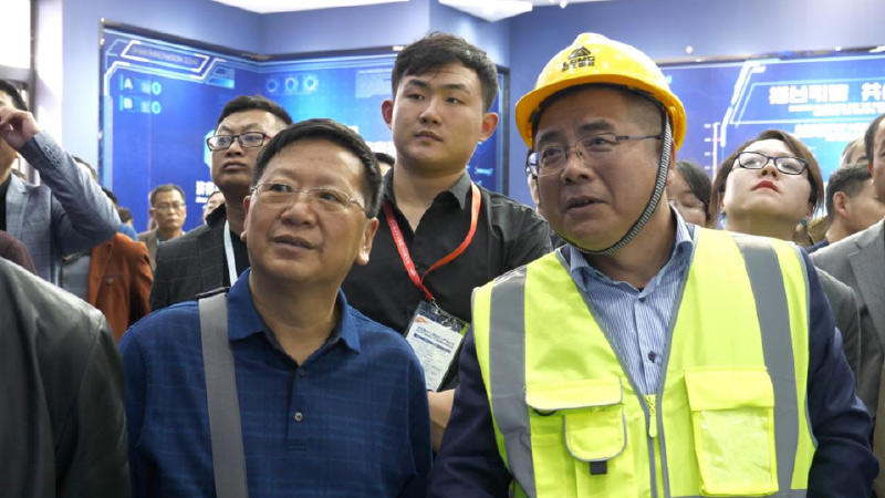 山特维克集团全球销售副总裁、大中华区总经理、济南澳门广东会网站矿山设备科技有限公司董事长沈桐先生陪客户参观工厂