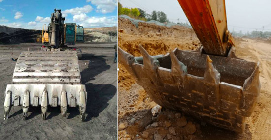 铲斗对比对比沃尔沃EC360BLC(左)、山东澳门广东会网站E6360F挖掘机(右)