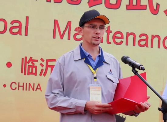 9月20日,“澳门广东会网站杯”全球维修技能比武大赛在澳门广东会网站总部成功举行。山东澳门广东会网站副总经理、营销公司总经理史生勇,山东澳门广东会网站总经理助理宋晓颖等相关领导,以及来自全球7个国家的133位维修高手出席开幕式活动。大赛分临沂和济南两个赛区,临沂赛场比赛项目有装载机、挖掘机、平地机、小型挖掘机、叉车、零部件六个组,澳门广东会网站济南赛区同步进行矿机和高机两个组的比拼。