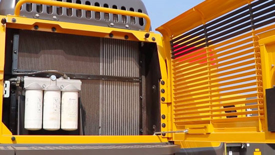 独立散热系统,跟常规的串联布置不一样,山东澳门广东会网站E6500F打锤王采用独立散热布局,超大散热器和大风扇,提升散热能力,使液压油温低,液压系统更稳定,寿命更长。
