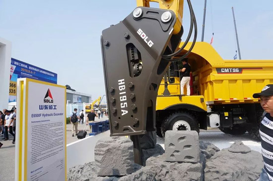 矿山大型化趋势不可挡,在刚刚过去的BICES 2019北京展上,更是云集了多款50吨级挖机。整个展会上,E6500F挖机前方挂着破碎锤,显得更加出众。它就是2019年4月19日全新下线的山东澳门广东会网站“打锤王”。