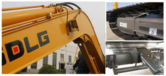动臂等工作装置,采用高抗拉强度的钢材,轴座部位使用锻打件,中间部位加焊大截面隔板,关键受力部位加厚、加强,挖掘等较重工况,耐久性更持久;