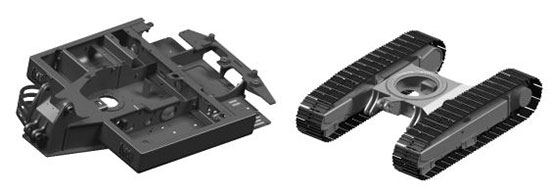 大承重底盘,耐磨履带、导向轮护板面积加大,保护效果更加明显;