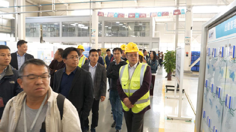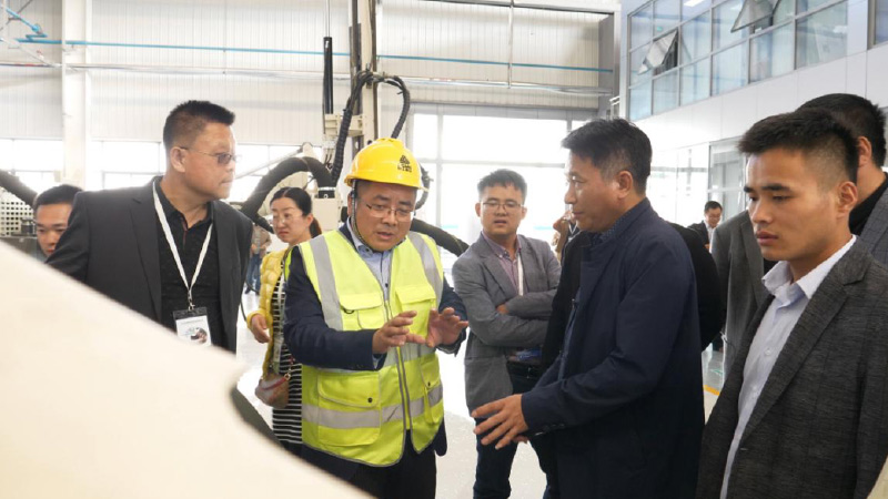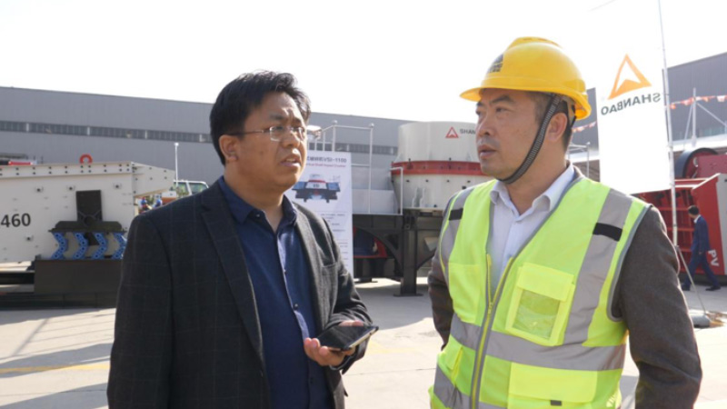 山特维克集团全球销售副总裁、大中华区总经理、济南澳门广东会网站矿山设备科技有限公司董事长沈桐先生陪客户参观工厂