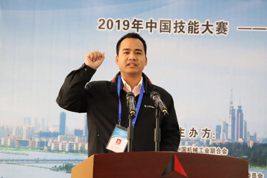柳州柳工叉车有限公司潘世乐代表参赛选手宣誓