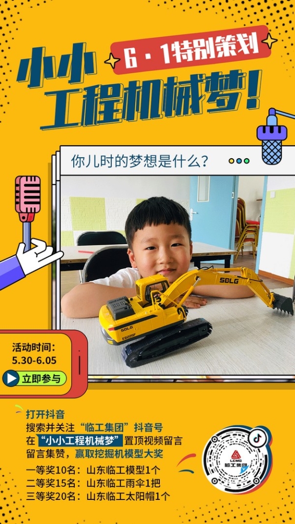 六一特别策划 | #小小工程机械梦#,抖音互动赢取挖机模型!